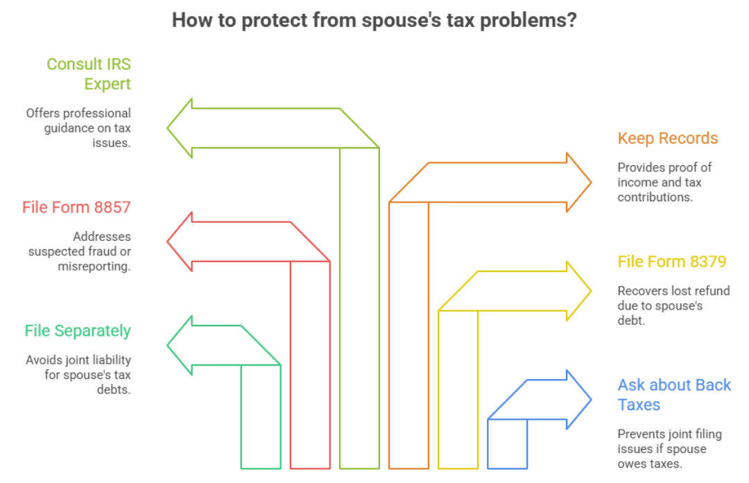 Always ask about IRS debt before filing jointly, and keep your financial records clean.